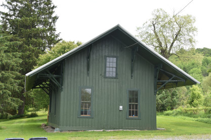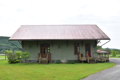 Delaware, Lackawanna and Western Marathon combination depot built in 1906 and was the largest concrete one built by the railroad. They were separate rooms for freight, express and baggage, as well as the waiting room at the south end. On the far side of the depot was a siding where a box car of less-than-carload freight could be placed for unloading.