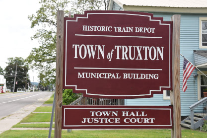 The wooden New York and Oswego Midland [Lehigh Valley] Truxton depot constructed in 1872. It is the town hall and was listed in the National Register of Historic Places in 2008. The building ceased use as a train station in 1967 and was then used by Agway as a warehouse. In 1991, it was sold to the town of Truxton for $1.00.