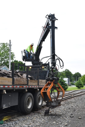 Timing could not have been better as there was a Railworks truck picking up tie plates with a huge magnet; something that Elizabeth (and most assuredly, others) had never seen before. Had we arrived ten minutes later, we would not have been able to witness this.