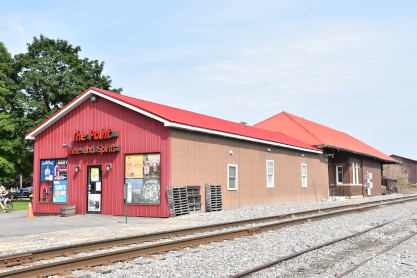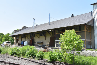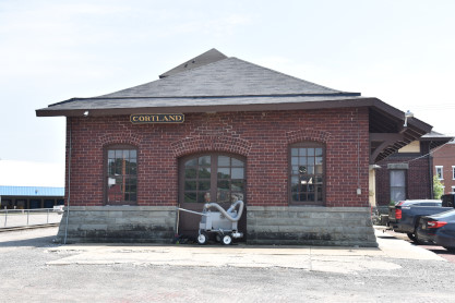 While not a station, this edifice, as seen from the Cortland Community Centre, still stands as testament to Cortland's role in America's great industrial age. The Cortland Corset Building, located at 75 East Court Street, in its heyday, employed more than 700 women, many of them Italian immigrants. The large industrial brick building, built in multiple stages starting in 1923, quickly became an anchor for the small city, which sits between Ithaca and Syracuse. It transformed into a burgeoning center for the production of ladies undergarments, particularly corsets. More than 100 years later, the Cortland Corset Building was still producing women's undergarments through a four- person partnership, Cortland Foundations (now Rago Shapewear). But by the turn of the 21st century, due to growing pressure on the American clothing industry from Asia, the partnership ended, and two of the partners — Peter Muehlbauer and John Dailey — opted out of the garment business and took over ownership of the Cortland Corset Building as part of their exit agreement.