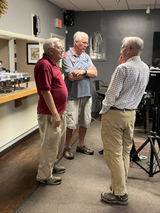 Jim Kelling, Society Business Manager Jim Dent and Board member Andy White chat before dinner.