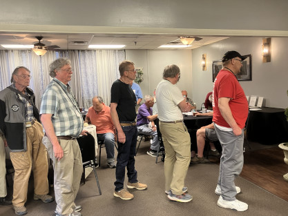 Conventioneers before dinner. Ted Xakellis, one of the organizers, asked Elizabeth to say grace and she was very honoured to do so.