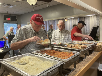 The selection of salad, chicken, pulled pork and pasta with rolls, then ice cream and mini cupcakes for dessert. Everyone enjoyed their meals and there was plenty for seconds. The presentation was most interesting, after which everyone returned to their hotel for the night.