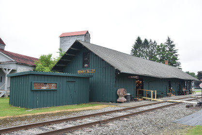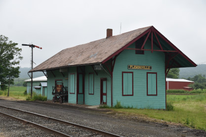 Lehigh Valley Flemingville wooden passenger depot built in 1902 and closed in 1935. The Tioga Transportation Museum opened for business here in 1975 and was the starting point for their excursion train, which started in 1984 as a Flemingville-to-Newark Valley run, but later expanded to the entire length of the line between Owego and Harford Mills.