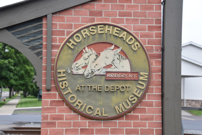 Horseheads Historical Museum at the depot. Horseheads is the first and only town and village in the United States dedicated to the service of the American Military Horse. A twenty-eight square mile memorial, unparalleled in American Military History, is the proud distinction that enshrines the town and Village of Horseheads. September 24, 1779 hallmarks the time and hallowed ground where lie the true relics and sun-bleached skulls of the American Military Pack horses of the armies of Major-General John Sullivan. These peaceful servants of General Sullivan and his officers, with about 5,000 "ragged rebels" (as expressed by King George III) brought forth a gallantry in the American Revolutionary War's western campaign against the Six Nations of Native Americans (Iroquois).