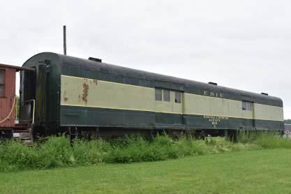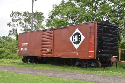 Erie Railroad 40 foot box car box car 7548 builder unknown, but constructed in 1928 and used in general freight service for many years before being repurposed. It was saved by the Chemung Valley Railway Historical Society in 2006 and moved to Eldridge Park in Elmira in 2007. Restoration has been undertaken by members of the society and the car will be used as the centerpiece in a railroad exhibit at the park. The Society was formed in 1996 with the goal of preserving the history of the railroads in the Chemung Valley area through the collection of photographs, memorabilia, artifacts and rolling stock.