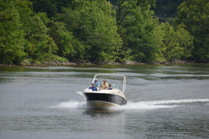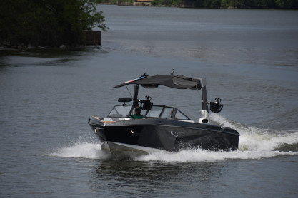 Another speedboat passing our riverboat.