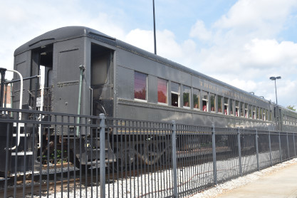 On a siding, we passed Gulf & Ohio business car 30 "Tennessee", ex. Seaboard System 309, exx. Seaboard Coast Line 309, exxx. Atlantic Coast Line 309, exxxx. Atlantic Coast Line 308:1 1944, nee Pullman "Manhattan", built by Pullman in 1916.