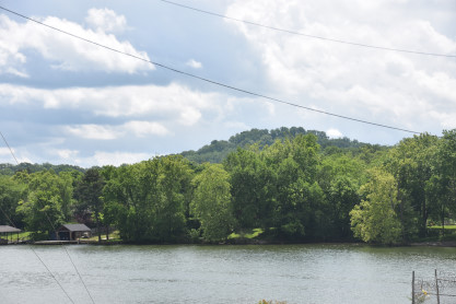 While partially obscured by the trees, this was our destination on the return trip. Experience the Star of Knoxville! This authentic paddlewheeler is fully enclosed, air conditioned, and heated for year round comfort. The vessel is equipped with two bars, a dance floor, band stage, and is exquisitely decorated for the most elegant dinner and entertainment available. From black tie events like weddings and receptions to a casual event like a football charter the atmosphere is right for any occasion.