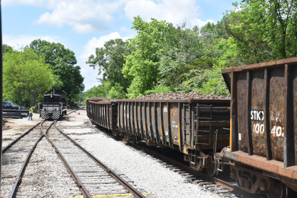 On the other side of the tracks was a display of Three Rivers Rambler 25 ton switcher 150, ex. Laurinburg & Southern Railway 150 1989, exx. Toledo, Angola & Western Railway 150, exxx. Dana Corporation 150, nee Bethlehem Steel 150, built by General Electric in 1943. It was acquired by Knoxville and Holston Railroad in 2015 and transferred to the Three Rivers Rambler. Nicknamed "John Henry" after the steel driven man. The African-American folk hero John Henry worked on a railroad construction crew in the 1870's. According to legend, Henry won a contest against a steam-powered drill but died when his heart gave out after the race. His story is immortalized in one of America's most famous folk songs.