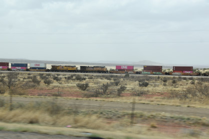 Mid-train DPU's 6469 and 8713. I drove from Tucumcari then west of Cline Corners, we switched again and Elizabeth drove to Albuquerque where we went to Cracker Barrel for dinner then checked into the Best Western Plus Rio Grande Inn for the night.