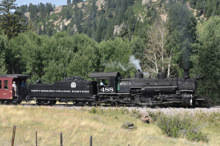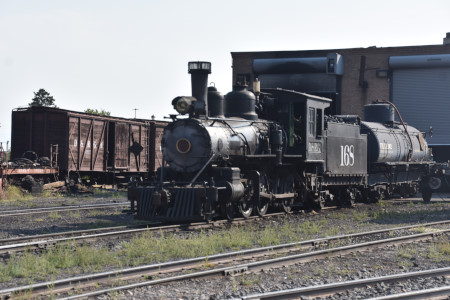 Denver and Rio Grande Western 4-6-0 168 built by Baldwin in 1883. It was on display in Antlers Park in Colorado Springs from 1938 to 2015 then was leased to the Cumbres and Toltec Scenic Railroad for forty-five years and was fully restored.