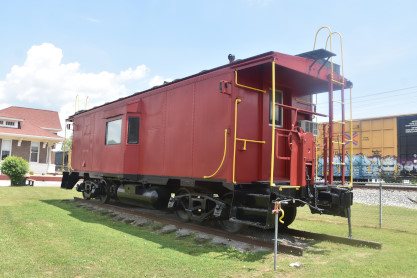Seaboard System caboose 11078, nee Clinchfield 1078, builder and year unknown. It was formerly in Carthage Junction where it was built into a relocated station. Its current number of 38583 is the Sparta zip code.