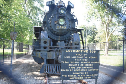 New York, Chicago & St. Louis RR 2-8-2 639 built by Lima in 1923. it was donated to the City of Bloomington by the New York, Chicago & St. Louis Railroad in 1959, after travelling 3,000,000 miles on the railroad.