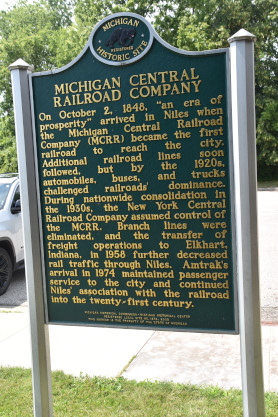 Niles, as such, was not settled until 1823 by Virginian Isaac Thompson. It was officially founded in 1839 and named after then-famous Baltimore journalist Hezekiah Niles. The town was incorporated as the first city in Berrigen County in 1859. The Michigan Central came through Niles in 1848-1849. The Michigan Air-Line and Big Four had also laid routes through the city by 1871 and 1882 respectively. The current passenger routes move on the former Michigan Central rails now owned by Amtrak, the other routes having been abandoned over the years.