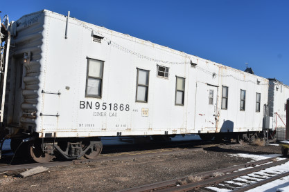 Burlington Northern kitchen car 951868 built as a box car in 1956 and converted to maintenance-of-way use 1985.