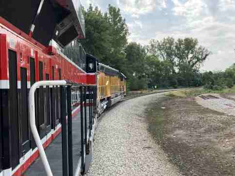 Just before Colona, we had to wait for a BNSF freight train on its way to Galesburg. It is seen from my coach window.
