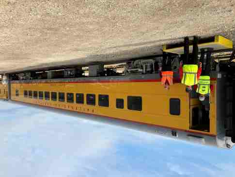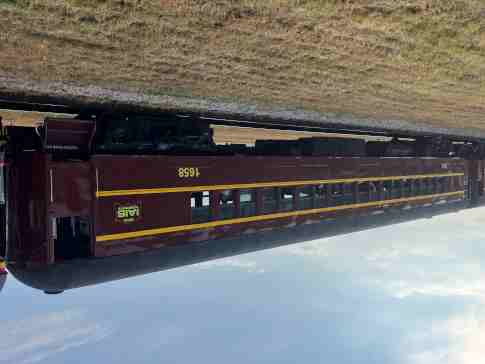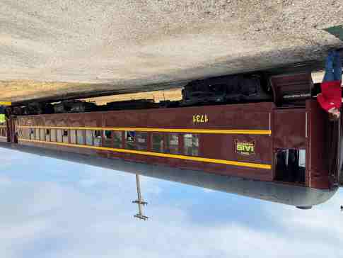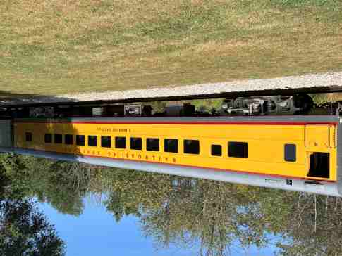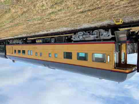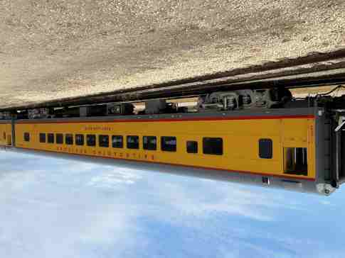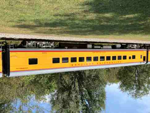 Railroading Heritage of Midwest America coach 5480 "Sunshine Special", ex. Union Pacific Company 5480 "Sunshine Special", nee Union Pacific 5480, built by American Car and Foundry in 1954. It was named to commemorate the Missouri Pacific train that ran between St. Louis and each of the large cities in Texas, from December 1915 to August 1948, when the train was replaced by the Texas Eagle. It was donated in April 2022.