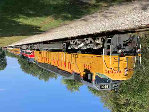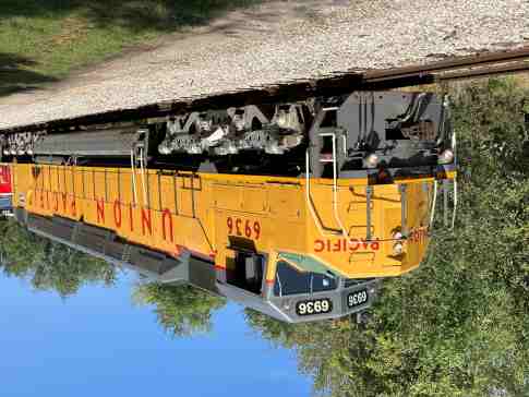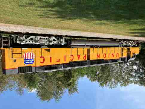 Railroading Heritage of Midwest America DDA40X 6936, nee Union Pacific 6936, built by Electro-Motive Division in 1971. It operated in regular freight service from 1971 to mid-1980 then was stored at Yermo, California, until February 1984 and operated in regular freight service, along with 25 other 6900-class locomotives, from March 1984 through May 1985. It was the last operating DDA40X in service on the railroad and removed from regular freight service on May 6, 1985 then transferred to the Heritage Fleet at Cheyenne and first used in excursion service on May 24, 1985. Union Pacific 6936 was last used in special service in July 2015 for the Cheyenne Frontier Days special, then since it could no longer operate over Union Pacific tracks in the leading position until Positive Train Control equipment was installed, the decision was made to donate it and other equipment to RRHMA in April 2022.