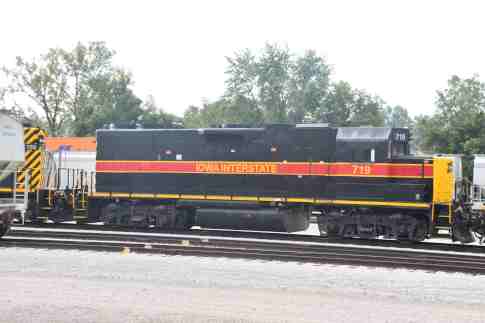 Iowa Interstate GP38-2 719, ex. Locomotive Leasing Partners 2337, exx. Union Pacific 467, exxx. Union Pacific 1967, exxxx. EMD Leasing 835, exxxxx. Conrail 8035, nee Penn Central 8035, built by Electro-Motive Division in 1972.