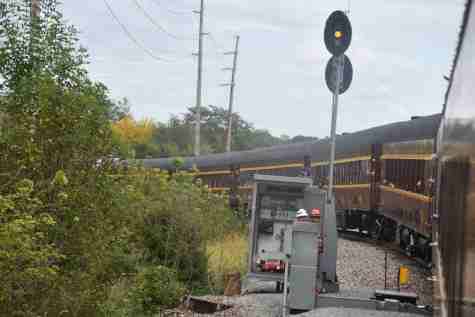 A series of curves as we make our way to the Homestead wye in South Amana. Elizabeth and I were in the vestibules for most of today's journey so captured both the front and rear of the train.
