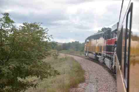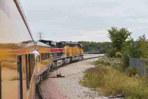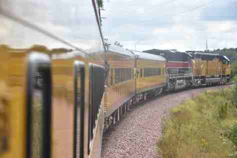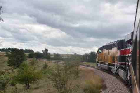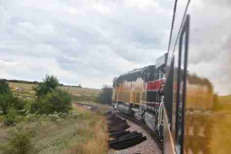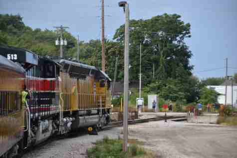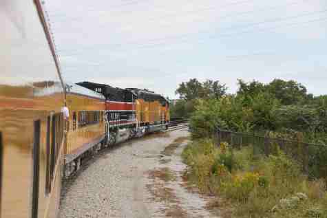 Tickets for the streamlined, air-conditioned coaches sold out and the regular coaches were almost sold out. The consist was Union Pacific DD40AX 6936, Iowa Interstate ES44AC 513, RRHMA coach "Portland Rose", RRHMA coach "City of Salina", RRHMA coach "Katy Flyer", RRHMA coach "Sunshine Special", RRHMA baggage car 904271, IAIS coach 1646, IAIS coach 1684, IAIS coach 1731, IAIS coach 1699 and IAIS coach 1658.