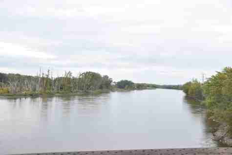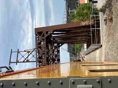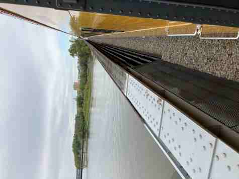 Crossing the Cedar River in Oxford at Milepost 211.8, on a ten-span deck girder design.