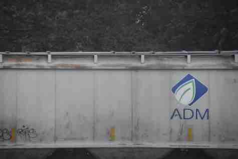 The ADM, or Archer-Daniels-Midland emblem on a grain car.