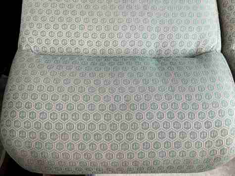 Back on board, each seat in former Union Pacific coaches retains their unique Union Pacific upholstery.