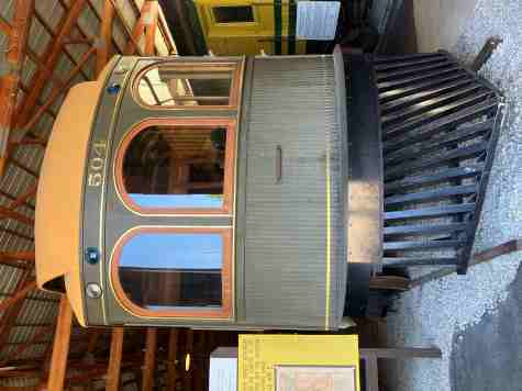Fort Wayne & Wabash Valley wood-buffet observation car 504 "Talisman", ex. privately owned (house) in Mongo, Indiana 1932-1993, exx. Indiana Railroad 354 1930-1932, exxx. Indiana Service Corporation 354, nee Fort Wayne & Wabash Valley 504 "Talisman", built by Cincinnati Car Company in 1906. It was one of the most opulent interurban cars ever built when constructed and included a baggage compartment, coach seating, buffet for serving snacks and light meals, a parlour seating area and huge curved-glass solarium windows at the rear.