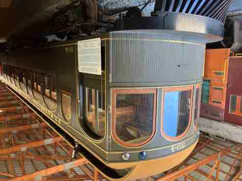 It was built as an unpowered trailer but in 1913, was rebuilt as a motorized car. It was badly damaged in a fire in 1938 and rebuilt again, this time with a modernized interior. It is preserved in the unusual prototype livery it received at that time.