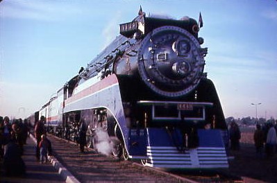 January 1976 -- The Americam Freedom Train with Southern Pacific 4-8-4 4449 at Anaheim Stadium.