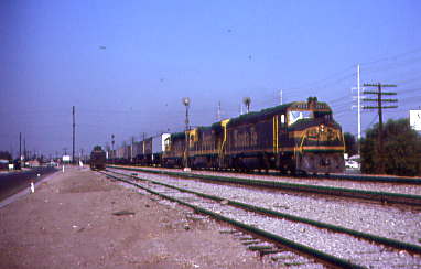 Southern Pacific 3206 heading west at this point through Buena Park on the way to West Colton in 1984.
