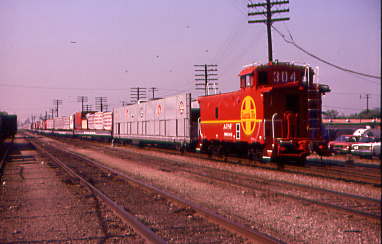 Southern Pacific's Anahein Hauler arriving Anaheim im 1983.