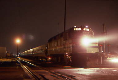 Amtrak 583 waiting on time one night in Santa Ana in 1982.