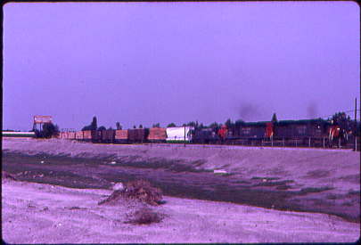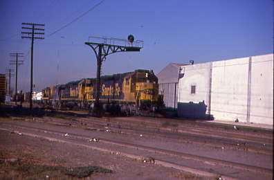 1976 -- Southern Pacific S6's 1277, 1272 and 1271 pull an empty sugar beet train back to Anaheim where the road power would be added for the journey to the Imperial Valley.