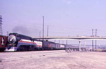 1977 -- Southern Pacific 4449 returned to Portland on an Amtrak Transcontinental Steam Excursion and I photographed it proceeding west through Colton.