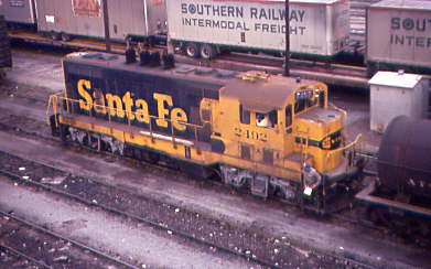 Santa Fe CF7 2492, nee Santa Fe F7A 301L, built by Electro-Motive Division in 1949 was switching the yard. It was leased to Amtrak in 1971 then returned to Santa Fe before October 1973 then rebuilt to CF7 2492 in November 1974 It later became Midwest Coal Handling 2492 before being scrapped in 1993.