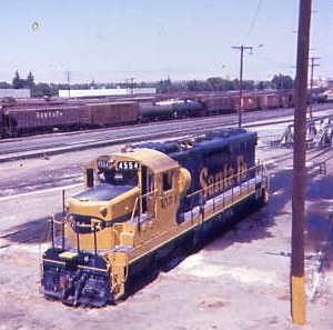Santa Fe SD26 4554, nee Santa Fe SD24 954, built by Electro-Motive Division in 1960. It was converted to an SD26 in October 1974 and this photograph was taken that month, the date lost to time. It was traded to Electro-Motive Division in Spring 1985 for a GP50 series and scrapped in spring/summer that year.
