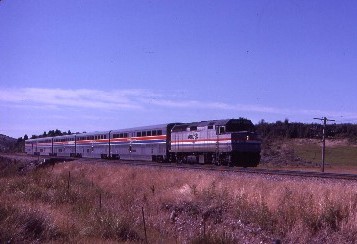 Coast Starlight 14 4/11/1981In the pouring rain, I boarded a Superliner coach on this version of the Coast Starlight; these were new cars and I looked forward to riding in them. We departed on time and after crossing the Los Angeles River, passed Southern Pacific's Taylor Yard before proceeding west through the heavily-urbanized San Fernando Valley then the rocks and tunnels around Chatsworth to exit the valley. These rocks were where Hollywood shot many of the old western films. We entered the fast-growing Simi Valley then moved through a more agricultural landscape to Oxnard. I was enjoying the Superliner Sightseer Lounge Car with its outward-facing seats upstairs and café downstairs. West of Oxnard, we crossed the Santa Paula River prior to reaching Ventura then paralleled the Pacific Ocean. This was Southern Pacific's Coast Route and even on this very rainy day for the next three hours, I had a view of the Pacific except briefly while passing through Santa Barbara.