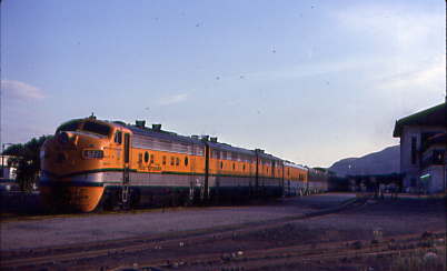 Due to slow trackage in Ogden, we arrived at Ogden Depot before the steam train and were able to photograph him passing the depot, where the Desert Wind awaited its nightly departure.