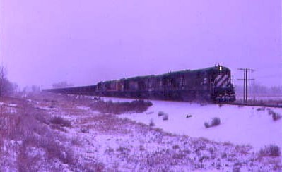 We drove east to Avondale catching Santa Fe 3675 West in the heavy snow then continued to NA Junction in the hopes of seeing a Santa Fe or Missouri Pacific train. Neither came, so we stopped at the Missouri Pacific station in Avondale and the operator gave me a system timetable, then we returned to Pueblo before going to Bragdon on the Joint Line to catch a few trains in the late afternoon.