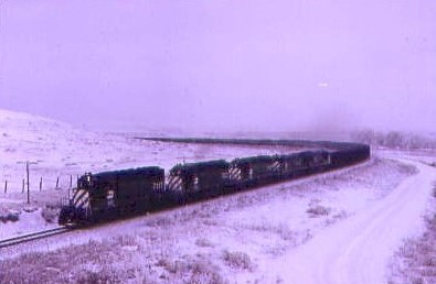 Along the way at Greenville was Burlington Northern 7135 East running beside the ice-covered wires. We arrived at Dalhart and staked out the Burlington Northern/Southern Pacific crossing to catch a few trains then drove US 54 south back into New Mexico and caught up to a westbound train. At Tucumcari, we returned to Interstate 40 driving west to Grants and the Motel 6 for the night. The next day, we railfanned our way home, ending this winter trip to Colorado.