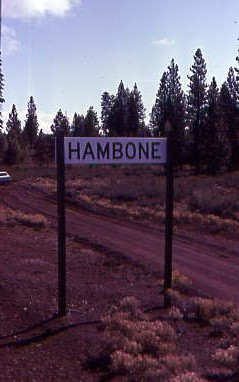 Station sign Hambone, Milepost 50.17 from 1929-1939, then 49.46 from 1939-1955 and finally 31 from 1955-2008. The lumber company first established a log camp named Camp 2 and then Pondosa at this spot that operated from around 1919 until 1927, when the camp and the name moved south to the present Pondosa location. The site sat idle for about a year, until the lumber company broke ground on the main line east to the White Horse country.