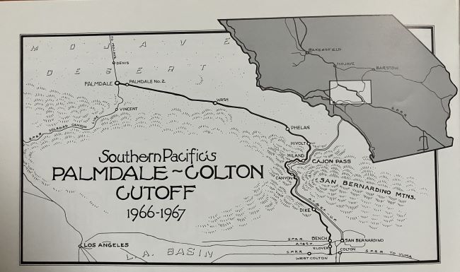 A diagram of Southern Pacific's Palmdale-Colton Cutoff from "Chard Walker's Cajon - Rail Passage to the Pacific". The above historical information also taken from this source.
