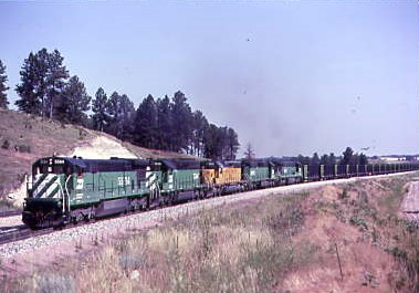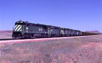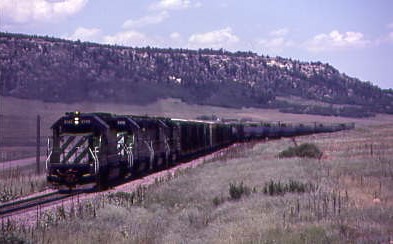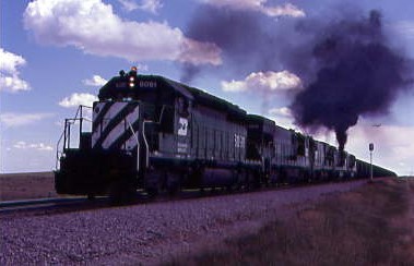 A little later, was the smoky Burlington Northern 8091 East cresting a little hill.
