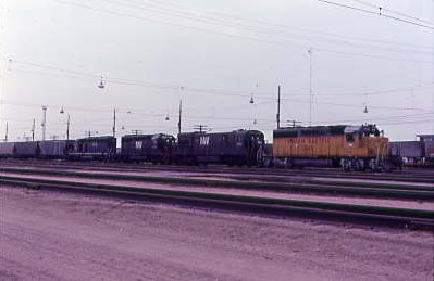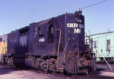 On another train was Chicago and North Western SD40-2 6922, built by Electro-Motive Division in 1975. It later became Union Pacific 3085 and then Union Pacific SD40N 1919. Note the Falcon Service paint scheme, one of only two locomotives to be painted this way. Falcon Service was the moniker given to the railroad's high-speed piggyback service from the west coast to Chicago, which started in 1973 and lasted until the mid-1980's.
