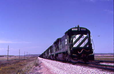 Further north, at Dwyer, we caught the local on the former Colorado Southern line from Wendover to Texline, Texas. From there we went to Guernsey and continued west.