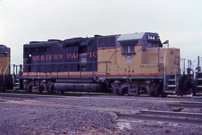 Union Pacific GP35 744 was originally Union Pacific 793, nee Western Pacific 3014, which was wrecked on July 27, 1982 near Reno, Nevada. It was rebuilt by at the railroad's Salt Lake Shops, using the long hood from Union Pacific GP35 744 and became Union Pacific 793 in late June 1985.