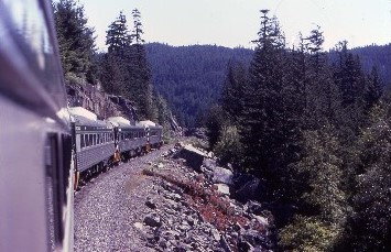 The train twisted and turned on its way up the narrow rocky gorge. The ride in the vestibule was incredible and the conductor came back to see how we were enjoying the ride, noting my camera. We crossed the bridge on which the RDCs were pictured on a Pacific Great Eastern timetable and it was that picture that drew me to this railway, and at this moment, I was crossing that bridge. It was an incredible feeling to live out one of my life's dreams.